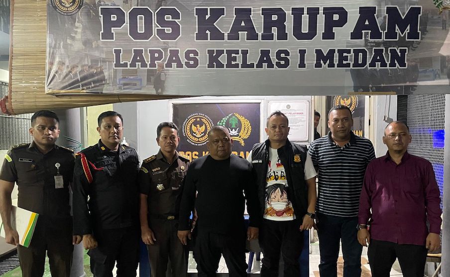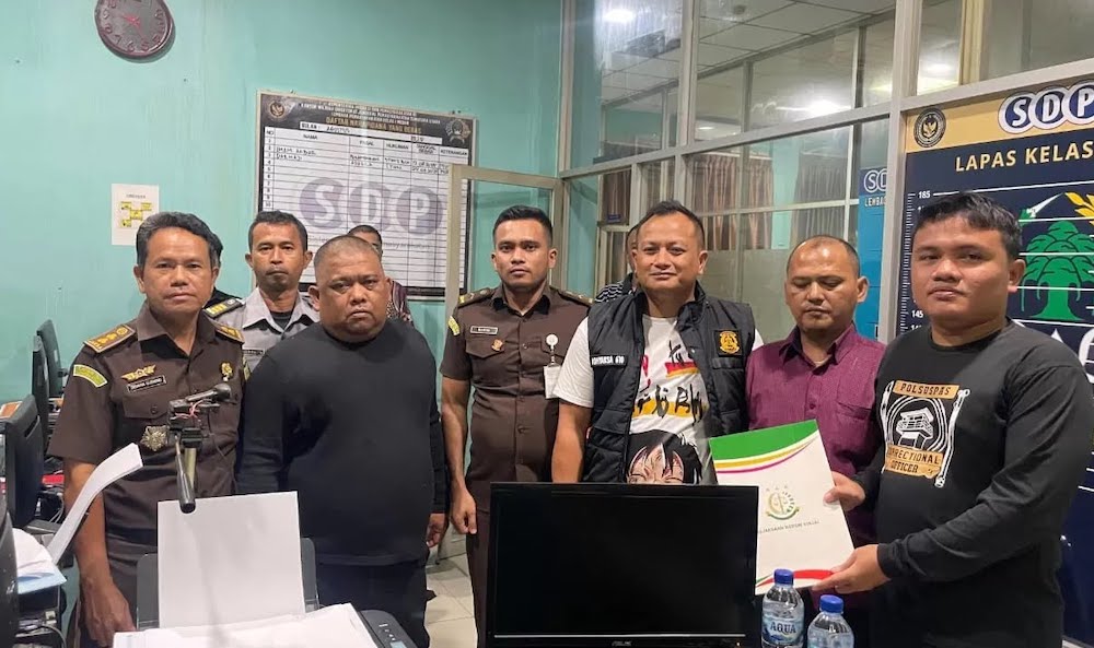 Terpidana Samsul Tarigan saat dieksekusi Intelijen Kejari Binjai untuk ditahan di Lembaga Pemasyarakatan Kelas 1 A Medan, Selasa 12 Agustus 2025 malam.
